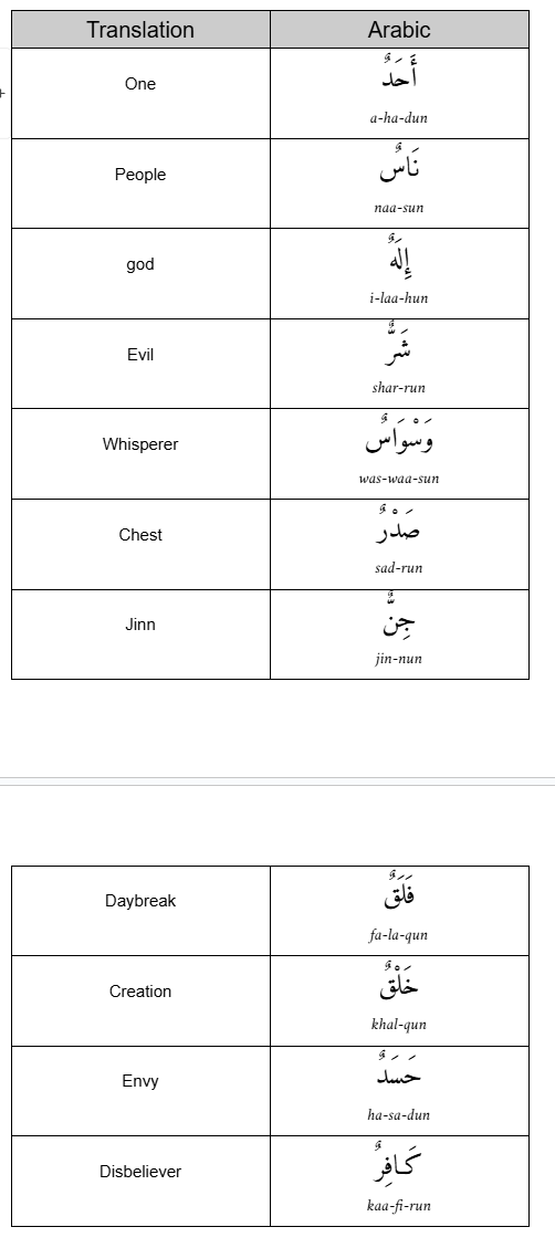 When presenting ayaat, color the vocab below, they need to know meaning of the colored vocab specifically, emphasize the following)*: